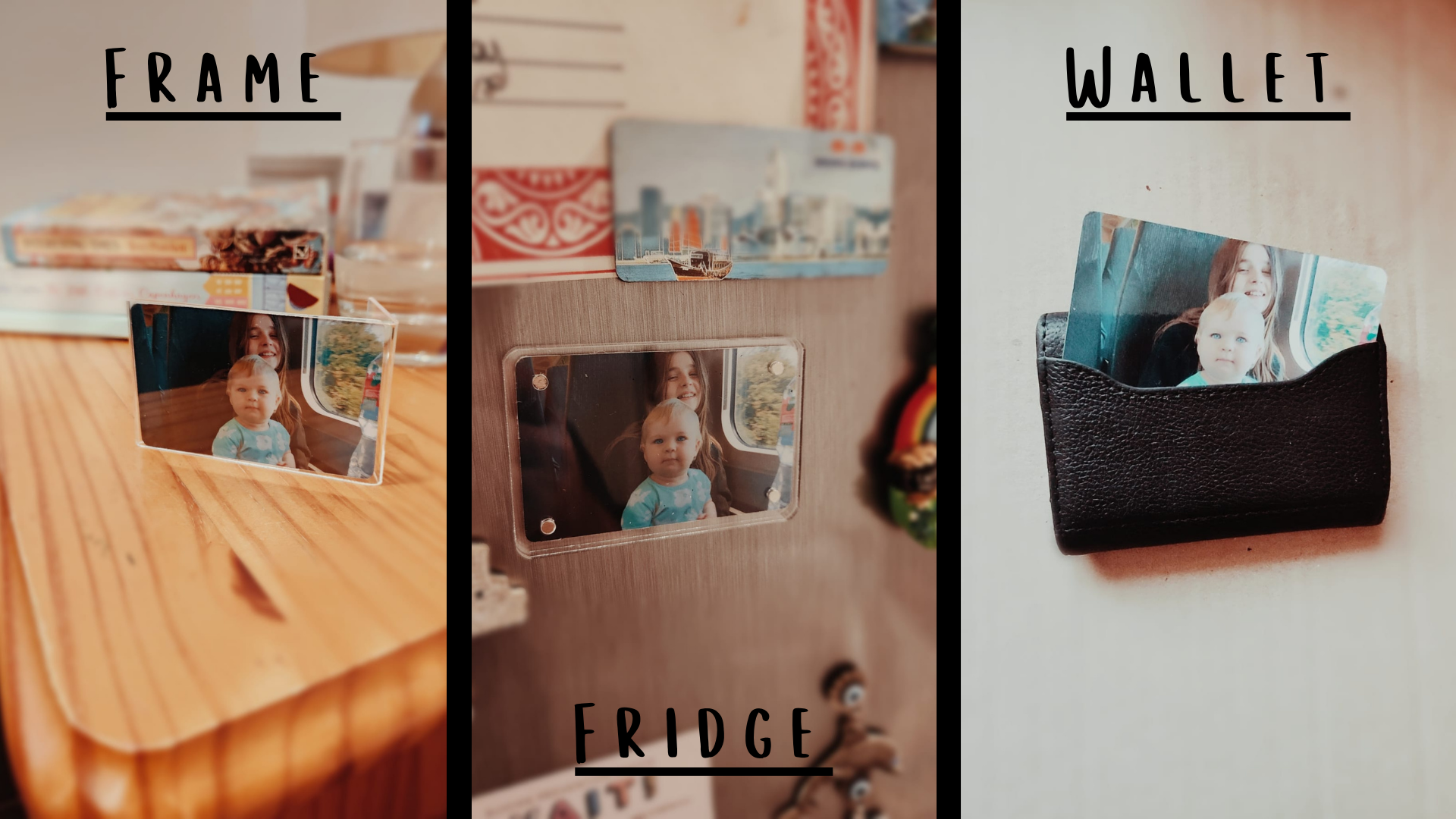 A multi display personalised memory that plays audio and video with a single tap. One complete system,Includes: NFC memory card, desk frame & fridge magnet